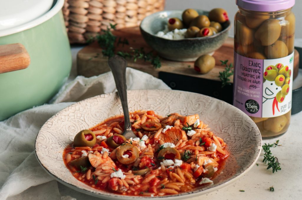 Σιγοβράζουμε για περίπου για 25’, προσθέτουμε τις ελιές κομμένες και αποσύρουμε.